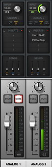If you are using the microphone inputs on your interface, you will find your input meters in your software mixer which is usually installed together with your audio interface. in that case make sure to keep your input signal at an average peak level of -9dB to -12dB as demonstrated on the image on the right (the peak level is the small green stripe at the top of the meter, right next to the fader). If you are using an external, analog preamp the workflow is the same but in that case aim at an average peak level of 0dB (indicated on the physical meter of the preamp).