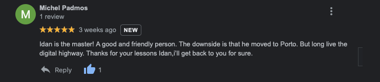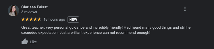 The price for each 2 hour lesson is 70€ including tax but if you pay the whole course at once you will receive a discount of 70€ (420€ in total instead of 490€)